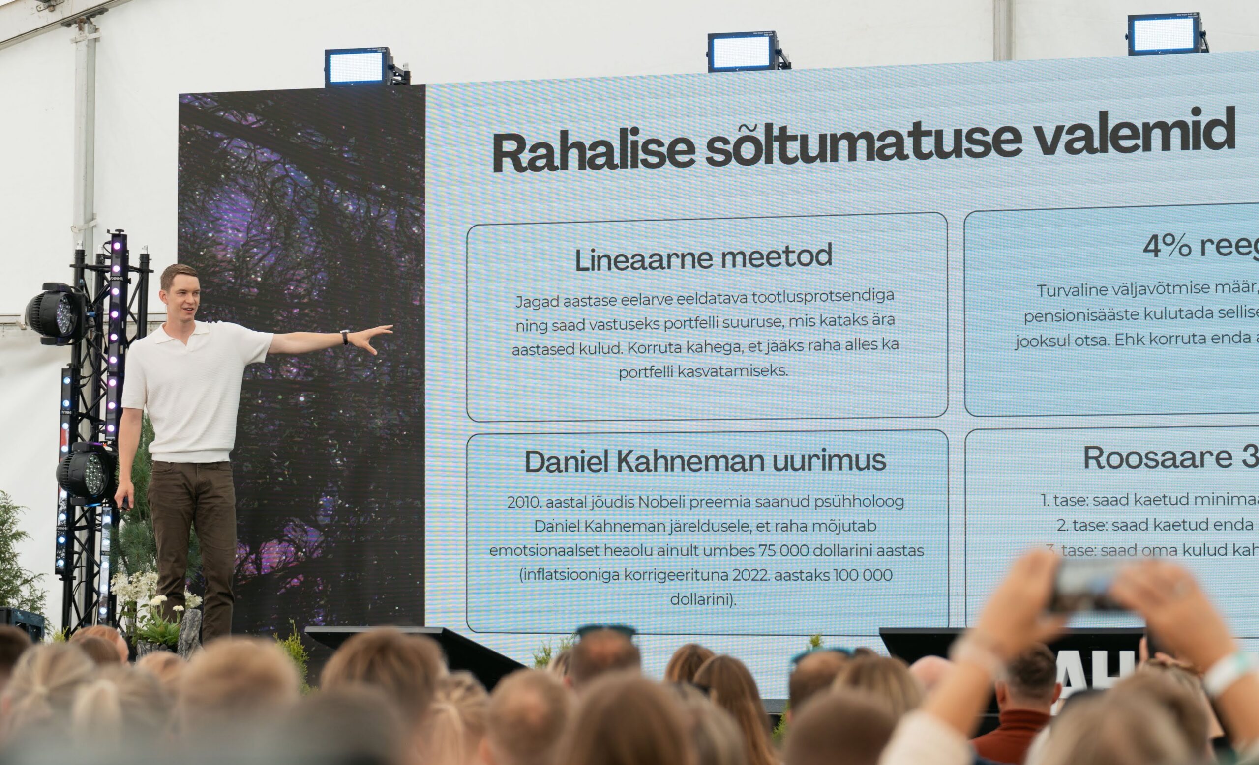 - Kristjan Liivamägi: Tänane portfell on 1,5 miljonit ja rahavoogu teenib üle 7000 euro kuus. Mõistliku elustiili tagamiseks oleks vaja portfelli üle 2 miljoni euro ja rahavoogu üle 10 000 euro kuus. Piisav portfell oleks 5 miljonit eurot.